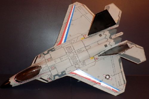 True Heroes F-22 Raptor, Black Tamiya spray paint, Staedtler permanent marker, Cobrastickers F-22 Skystriker stickers, Silent Strike stickers, sandpaper