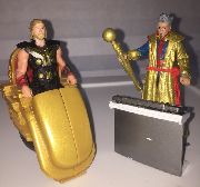 I'd joked about sticking a Jurassic Park Ian Malcolm head on a Last Jedi Snoke figure to make an LBC Grandmaster. And that is where I tried to start with this until I a) saw how bad the Malcolm headsculpts were and b) how much the 5 PoA Snoke figures are going for. So I started piecing together a custom that could stand next to the Ragnarok Thor figure and look like they belong with each other. I know the likeness isn't perfect, but there is no good way to capture the Jeff Golblum whimsical magic. Thanks to Kilcarr, there was an attempt to match the crazy hair.