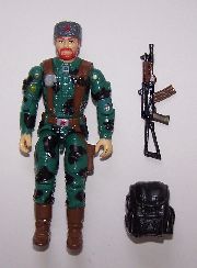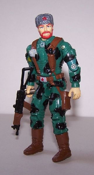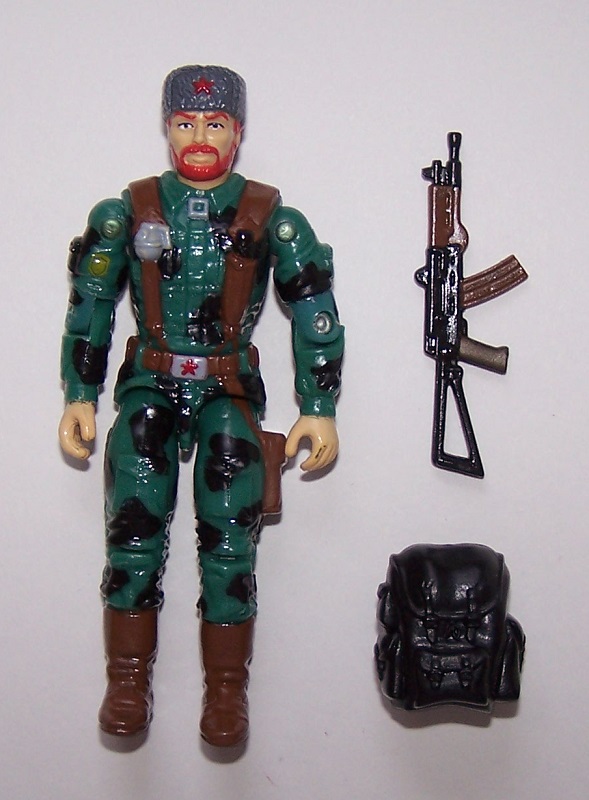 This is a paint upgrade for Big Bear, whose original figure is rather plain. I added some camo to his outfit, and painted a few other details as well. I also upgraded his weapon. A number of sources suggest his weapon is supposed to be a PP-19 Bizon submachine gun. But that firearm didn't even bein development until 1993, the year after Big Bear was released. If you look closely at the accessory it's pretty clearly an AKS-74U carbine, but with the rather unfortunate feature of not being loaded. So I added a magazine from Marauder Inc. to it, removing the sling in order to allow it to fit, and painted some detail on it as well.