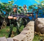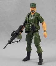 Loosely based on the D.C. comics series, Sgt. Rock toys were produced by Remco in 1981-82. The 3 3/4" product line included figures, vehicles and playsets. Sgt Rock was the only named character in the first series. Other figures were simply known by their specialty like Ranger, Gunner, etc. A year later, Remco created a new enemy for the toy series. These consisted of repainted Sgt. Rock toys and featured a logo of a yellow snake. Apparently, "The Bad Guys" were enemies of Sgt. Rock, G.I. Joe, M.A.S.H. and "all mini action soldiers". Some Sgt. Rock accessories and vehicles would later be repainted and reused by Remco for their American Defense series.