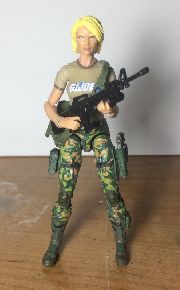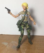 I missed out on the GIJCC Subscription Service Bombstrike, but when Marauder came out with the Valkyries I knew I had a great opportunity to make one that was even better than the FSS figure. She is a Valkyrie with the t-shirt torso with the sleeves and collar painted brown to more closely match the original figure. A few Marauder weapons and accessories were added and Bombstrike is ready to join the modern ranks of GI Joe!