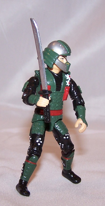 We were going to get a second version of Budo in 1995 until the entire GI Joe line was cancelled that year. The figure mold did get used to make a movie edition of Shang Tsung from Mortal Kombat. So by taking one of those figures, and the available pre-production photo of the 1995 Ninja Force figures, we can make an approximation of that Budo. I decided against just making a straight reproduction of it, since I thought the paint apps and some of the colour scheme could be better, so we can say this custom is inspired by the 1995 figure rather than based on it. I used chrome ink on the sword blade to make it super-shiny. The figure sculpt is both good and bad. The head sculpt is pretty fantastic, but the figure suffers from the oversized torso that Ninja Force and other later Joe figures had. Plus his legs are too skinny, but the arms are just fine. The pattern on his pants is not something I came up with - those little designs are sculpted into his legs. The most challenging part of this custom is, of course, the fact that the torso is permanently glued together, with no screw in the back. I could have tried splitting it apart and then gluing it back together when done, but I decided to just paint the figure without disassembling it.