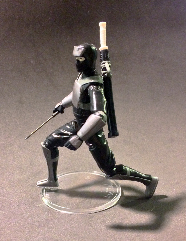 Dark Ninja Brawler was one of the new characters introduced in the GI Joe Micro Force line of mini-figures. The name is confusing. Is his codename "Brawler", and he's a Dark Ninja? (Like naming a character GI Joe Hawk). Or is brawler intended to modify what kind of dark ninja stuff he does? I went with the latter option, imagining that this is a guy who loves to fight. He doesn't necessarily do the direct assassinations and such. Other Dark Ninja do, but Dark Ninja Brawler is a wiry-but-vicious fighter waiting in the shadows to create distractions and chaos if things don't go as smoothly as planned.