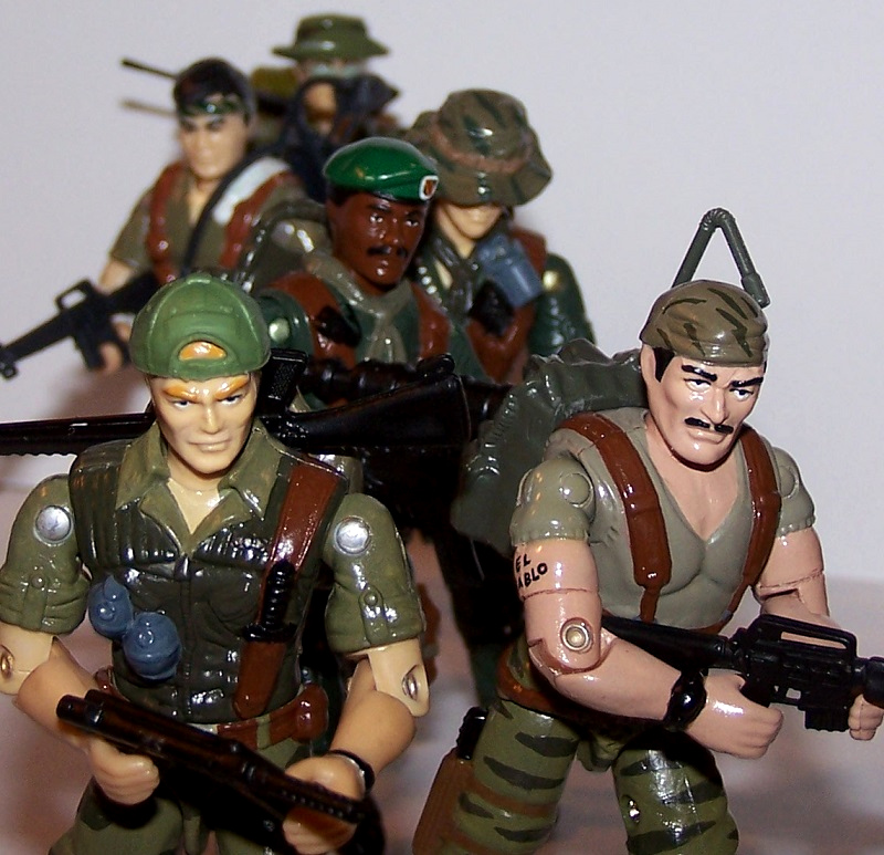 In Vietnam, Stalker, Storm Shadow and Snake Eyes all served in the same Long-Range Recon Patrol (LRRP) unit. The other members of the team were Dickie Saperstein, Ramon Escobedo and Wade Collins, all three of which apparently died in a firefight. The surviving members later found out (in comic issue #42) that Collins had actually survived, and become a Cobra Crimson Guardsman. Some of Larry Hama's finest GI Joe storytelling to be sure.