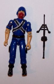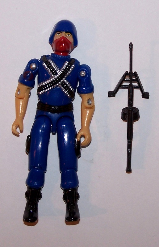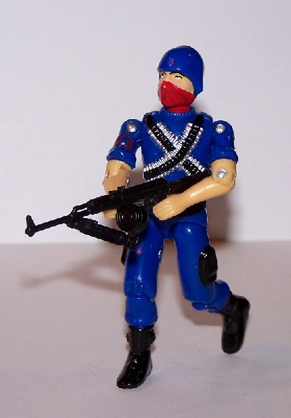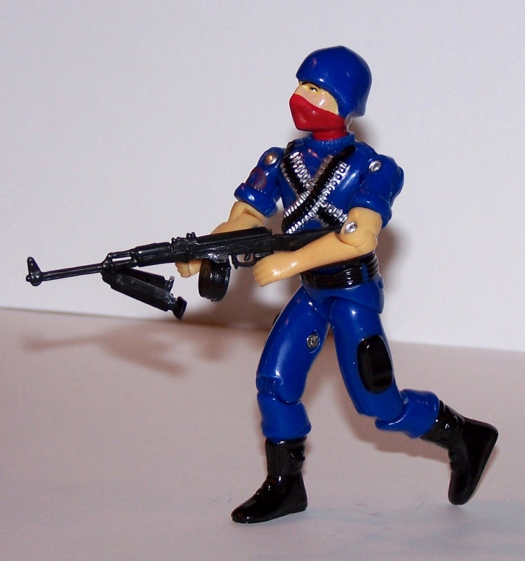 I received a set of Red Laser custom figures and decided to use them largely for parts, sometimes combining them with parts from a set of White Elephant Toyz figures as well. I don't really remember which parts of this figure came from which set, it's a mishmash of various parts. Figure names like "Cobra Soldier" or simply "Cobra" are not very evocative, so I wanted to give each type of faceless Cobra from the early years of the line unique names, much like the Vipers of later years. In naming these troopers, imagine that Cobra Commander has a Napoleonic view of himself and so uses many terms from the Grande Armee. So the Tirailleurs are machinegun toting infantrymen.