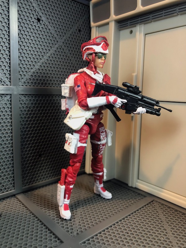 A top Combat Medic she came to the attention of the G.I.Joe team after she came to the aid of a pinned down and injured Joe member. She was able to not only locate and extract the Joe but also engaged in such a fierce firefight that the enemy began retreating thinking they were facing a SpecOps squad rather then a Medic. Her tenacity and sharpshooting ability make her all the more important on the battlefield.