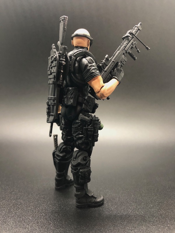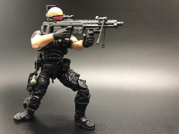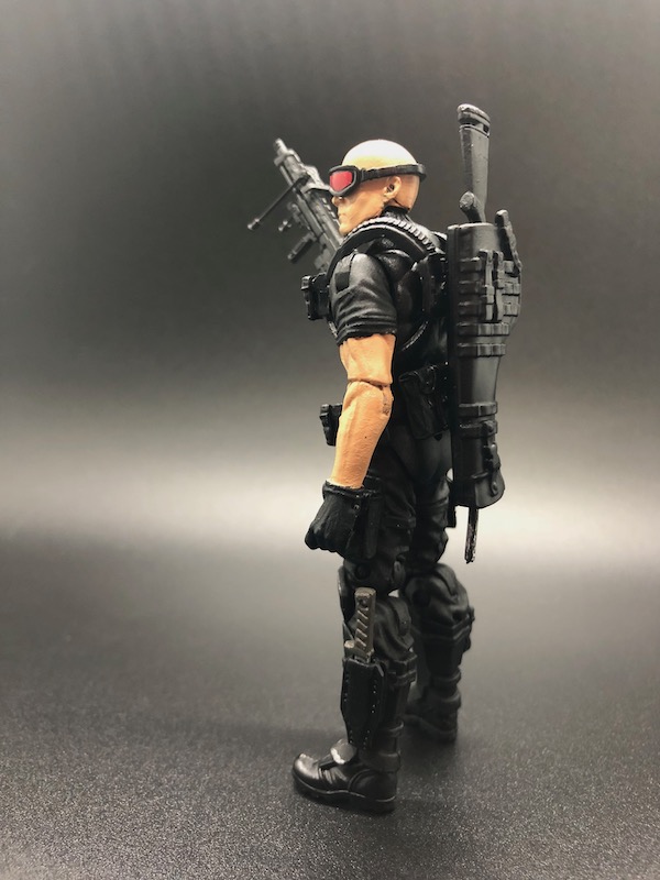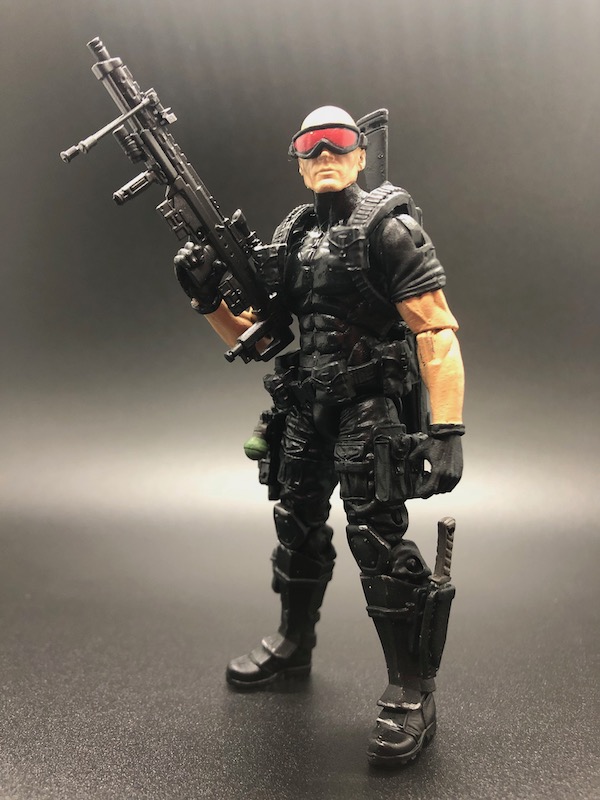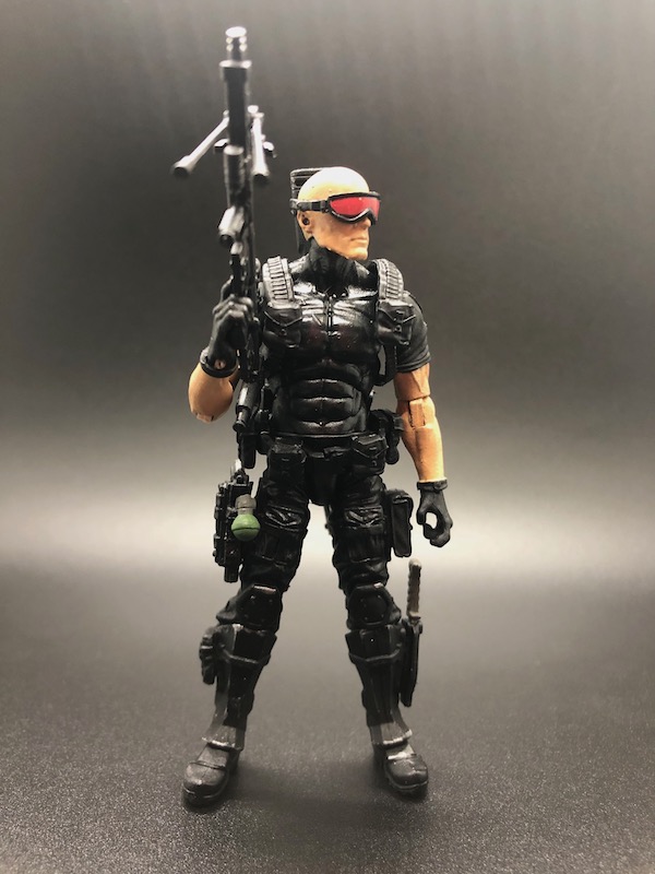 Blackout, brother of the G.I.Joes Bombstrike and Barrel Roll is a disgraced Joe turned Cobra. Since the undead began walking and Cobra has been reunited and risen from the ashes of the old he has never been out of range of Cobra Commander. Providing near round the clock protection for the commander from both the undead and any living that might wish the Commander harm.