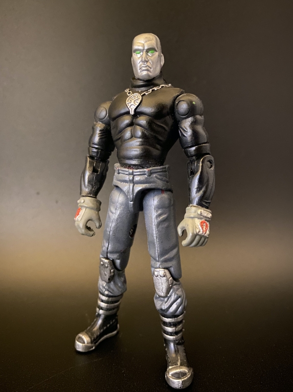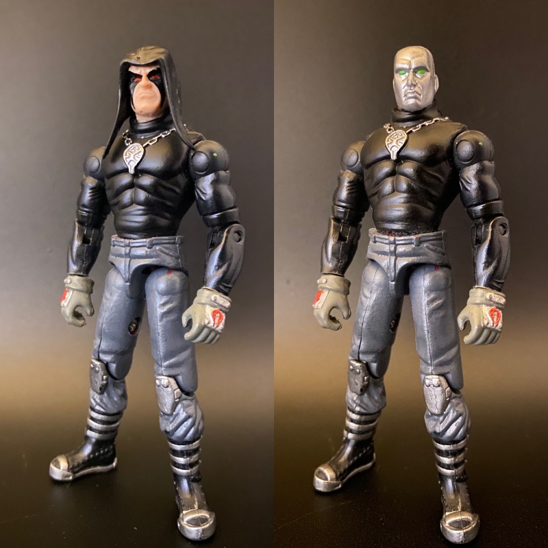 I made this Zartan a long time ago. I dug it out and put in a piece I found from a long time ago, a neck peg that would allow a RAH-type figure to accept a modern head. So I popped the neck in and looked for a head that would work. It was slightly coincidental that the head that looked best was a Destro head considering that the original figure was almost all Destro. I decided that it was meant to be.