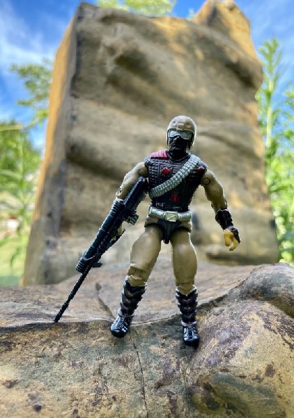 this is one of those rare instances where a completed custom evolves over time with a new or updated paint scheme. The original custom Armadilha figure included some red and black squiggly lines...I wouldn't even call it camo per se. Years later, I updated the camo to make it look more like camo by filling in more of the color black. However, I still didn't care for it. I finally decided to go with the less is more look and take away the camo all together.