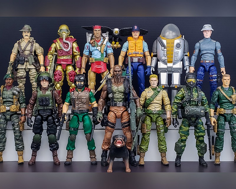 The last big tweak is the additional of the googles-idea swiped from customizer Tunnel Rat. I liked how the goggles made the whole mask/helmet more bulky and busier than the 25th. It was also a good sure way to hide that tab at the goggles that is supposed to slip under the helmet. In most of the attached photos, the goggles are from my 50th Hit & Run surplus. The photo with Ripcord uses Cobra Para-Viper goggles-I was able to find and extra pair later, and they are a much better profile and fit.
