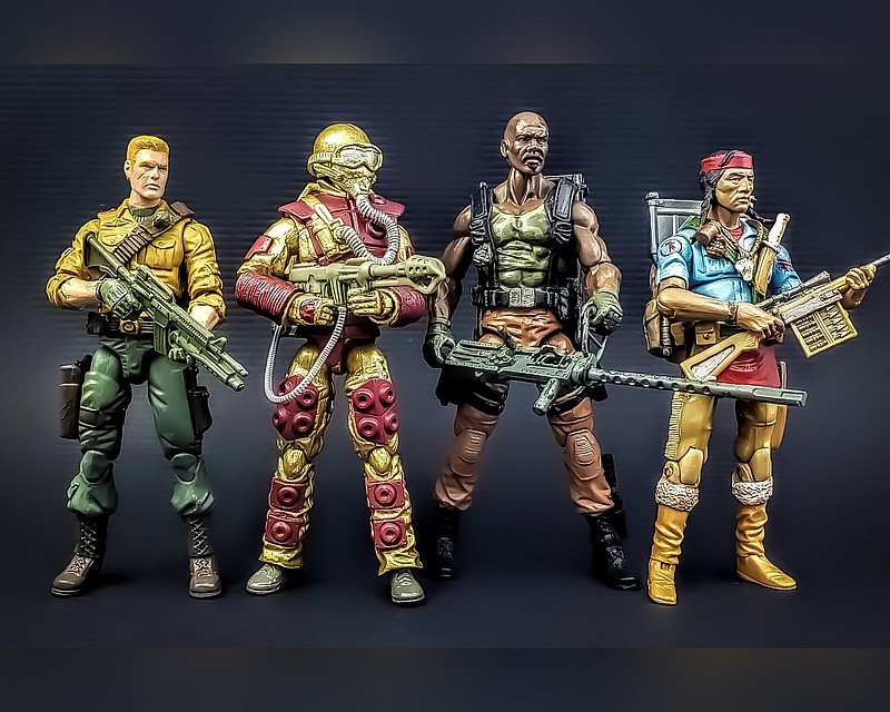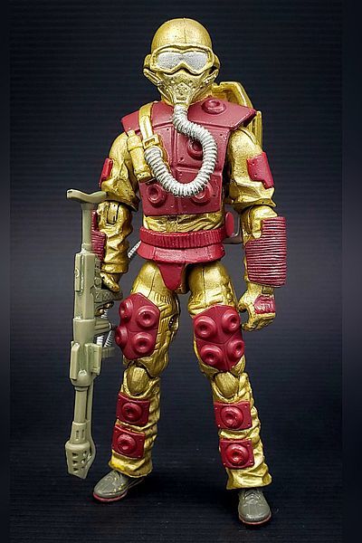 I thought the tan and green concept art-based version of Blowtorch would be my display go-to, though unveiled long after his glory days. Red+yellow had his time on my shelf prior to 2015, but the red+yellow combo was just too garish and made him stand out among the 80+ figures (and not in the good way). However, after a few more years, I felt the tan+green also made him less recognizable in the collection display as, well, Blowtorch. The solution was to switch out the garish yellow for a yellowish gold. It worked for Iron Man in 2008 (comics, movie, figures), why not here?