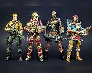 The big lower arm pads in red helped the color balance as well-but the main reason for the switch to 2014 Low-Light arms was to upgrade those awful pre-posed hands with ball-hinge hands, allowing for two-handed flamethrower grip. Another body tweak to the figure to help posing was to swap the lower legs, since one leg was much longer than the other, making him hard to stand straight.