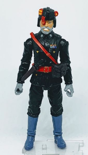 Full disclosure: I knew absolutely nothing about General Mayhem when I started my custom. I had gotten a free custom cast head in an order and, not knowing who the heck the head belonged to, I went onto Yojoe.com and found it was for some 2005 convention figure called General Mayhem. Apparently, he's some ultra violent Russian General who got a job as an Iron Grenadier. Okay, we'll...not wanting to waste a good cast head, I built out my custom. My figure dressed more, shall we say, ceremonially, than the original figure. I used a WWII German soldier body with some regalia stickers, painted the head to match, finished off the boots in gray and - bam - you have General Mayhem.