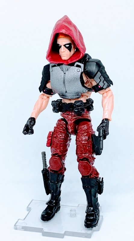 I know the Boss Fight hood looks a little stupid, but in my defense, it's almost impossible to find a 1:18 scale hood that DOESN'T look stupid. I was forced to splice the torso of a Boss Fight male buck onto the waist and legs of a Marauders figure. I still don't have proficiency in doing that, so I needed a thick black belt to hide the amateurish job.