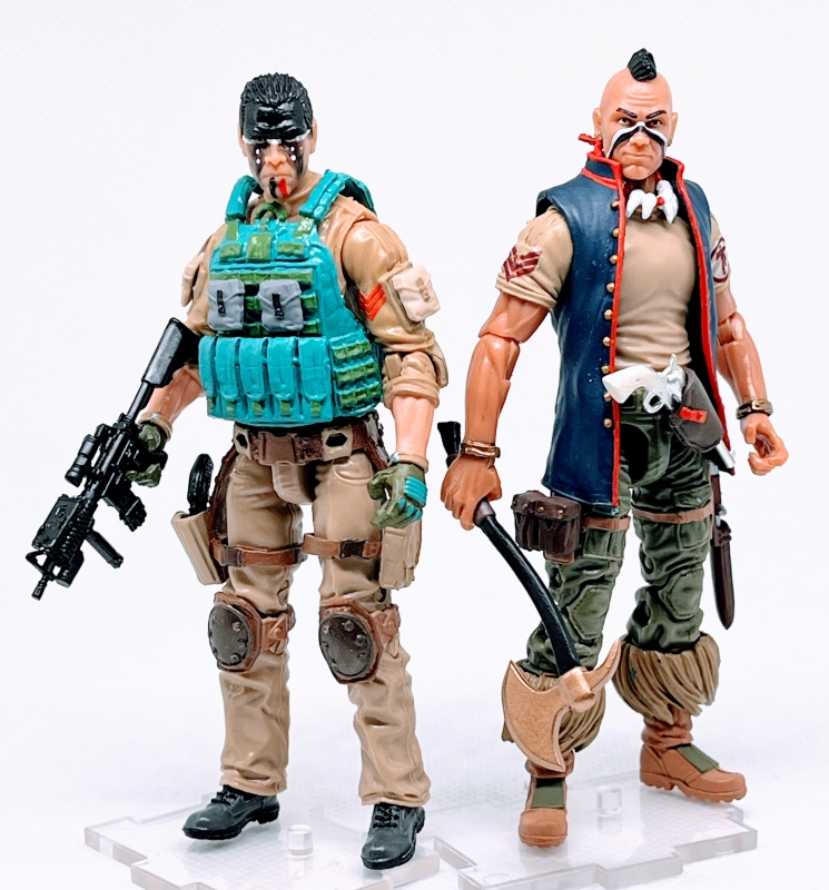 I know that the Mohawk is not closely associated with the Apache, but they were known to have partly shaved heads with a small patch of hair on the crown of the head, so I felt like I could use the Marauders Mohawk Head. I gave Apache some edged weapons to really nail home the image of a man employing weapons for silent combat. Having said that, I also gave him a SAW to give him some backup firepower.