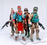 On the filecard for G.I.Joe Airborne, it mentions him being born in the Navajo reservation in Arizona. Spirit's filecard does not mention of any tribe or nation, but it does list his birthplace as Taos, New Mexico. The big tribes in New Mexico were the Pueblo, Navajo, and Apache. Okay, so I thought about making this guy a Navajo to match up with Airborne, but I decided to make him an Apache. I researched Apache war-paint and decided on the simple white and black nose-bridge paint.