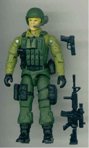 Well this was a fun figure to make. The torso was sanded and various pouches were added as well as the flashlight. Yes the flashlight is removable. If anybody is curious the correct drill bit size to make a working hole for the light is 5/64. Both thighs were sanded down and had a holster/starps and pouches added. The breaker headset was cut and glued to the helmet. The Canteen was glue to the waist. Let me know what you guys think.