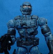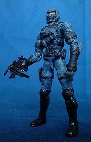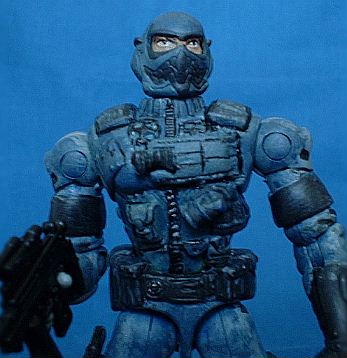 I sculpted on a sidearm to his leg and some clips to his left leg since it always seemed odd that soilders who would be involved in close combat fighting woudln't have handguns as part of their equipment. To my knolwege none of the Alley Viper figures have any had sidearms.