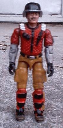 Customizer's Comments: I was messing with a spare Big Ben head when I noticed that with a mustache he could look like Bazooka, the hard part was cutting off the hat and down the head so he could wear a helmet. I figured that as a propelled weapons specialist a padded jacket and some form of knee protection were both musts. Then to differentiate him from Backblast, Zap and my other rocket troopers I put him in charge of the missile systems for my vehicles. Even they've got to have someone to operate them, right?
