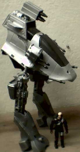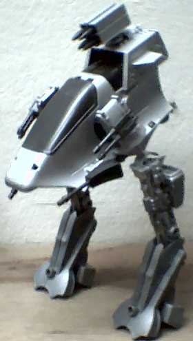The structure of this vehicle was finished and I'm sending him to a friend with an aerograph airbrush to create a paint scheme suitable for the urban environment. Also, this mech has more articulated joints in the "knees" than my previous mech.