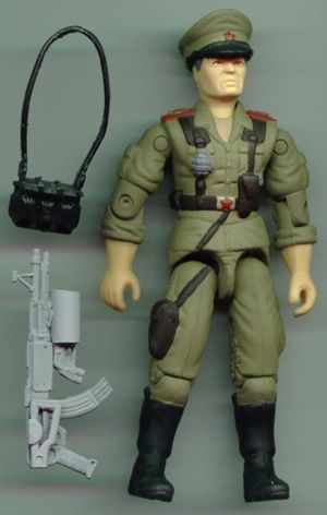 To make up for the lack of modifications on the figure, I made this gun. The base is Red Star's rifle, with the clip, scope, stock, barrel, and area where the trigger should be removed. The Baroness' rifle provided the trigger and trigger guard. The collapsed stock came from the Cobra Soldiers rifle. The two clips (the clips are doubled for quick reloading) were from Cobra Officer rifles. The barrel and sight came from Iceberg's rifle. The grenade launcher was made from General Hawk v3's gun, a finger lancet, and a piece from a Cobra Officers rifle's stock.
