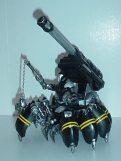 My fourth Arachni-B.A.T., I was afraid i went a bit overboard with this one since the gun is just SOOOO huge, but it looks good with the other ones. I also loved the giant morning star-mace and chain assembly attached to his arm, I can see him just climbing up on a tank, swinging the mace around to knock off the driver, then firing the cannon into the cockpit.