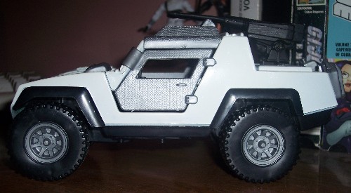 At the time, all I had was the Snowcat and decided to cannibalize a jeep into the cold weather ranks. The jeep was made of an ugly green plastic that really didn't fit in anywhere and it had a cheap-looking missile launcher that had that stupid spring-firing cannon on top.
