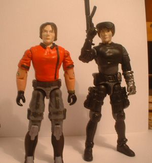 For the character herself I didn't want to make a figure who looked like any of the Joe girls, so I went for a tough, headkicking look - thus the squarer jaw, and the stocky frame and short hair. And of course, as Spike Speigel said in Cowboy Bebop - 'I love a girl who can kick my ass' :o)