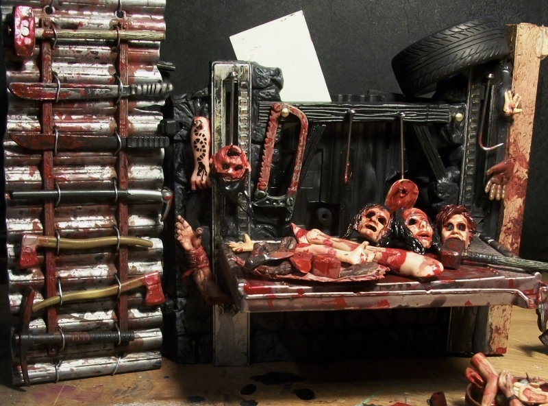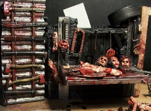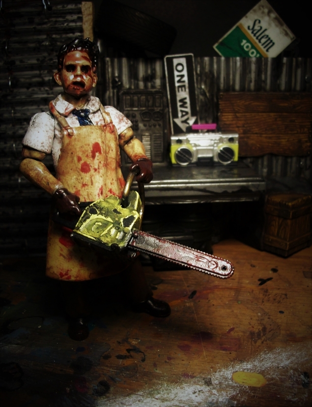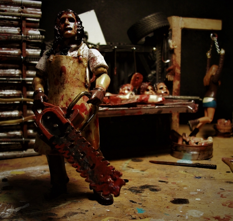 This year for a Halloween custom i made Leatherface. i really didn't intend to make a dio for him, usually I just take pics of my horror figures in front of my spooky house.