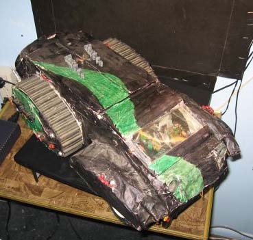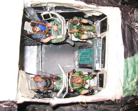 Since the first version was made from cardboard it began to age and sage, I decided to completely rebuild it about 3 years ago. This time I built it with the aliens APC as the main idea so I added some computer stations in the cockpit which now holds four instead of two like the Thunder Tank did and added an opening to the rest of the APC. I also made the treads larger so I could fit more troops inside the rear area.