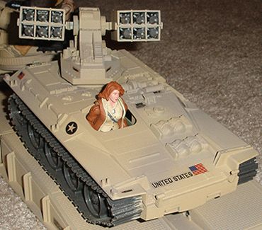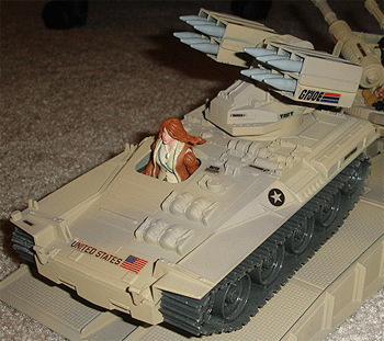 Facing a growing threat in the Middle East, General Hawk felt it was time for the Joes to hit the motorpool and begin giving updates to their vehicles. Not to be outdone by Clutch's Vamp Mark II, Cover Girl went ahead and applied a new desert scheme camouflage pattern to her Wolverine Armored Missile Tank.