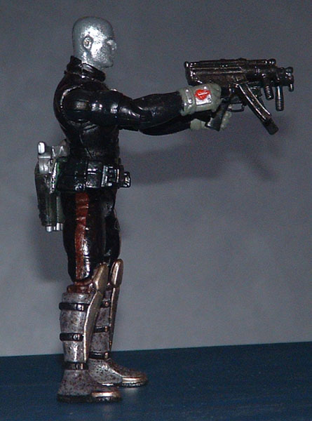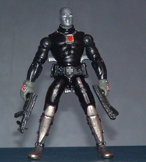 I saw someone use a Zartan head for Destro somewhere and thought it looked pretty cool. Nice and stoic, but still mean. I like the original sculpt and used that for inspiration here. The big medallion always bugged me but he doesn't look right with out it for me. I think the all black look makes him feel more like a freelancer and not just a Cobra lackey. I think of the pistols as a gift from Cobra Commander to Destro for years of loyal service or something. A token of appreciation maybe.