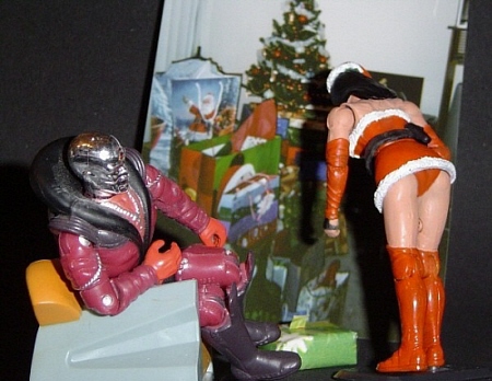The head was simply a repaint with a custom Destro necklace painted on and a frilly "Santa hat" sculpted on with green stuff.