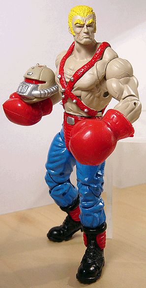 This is a one-of-a-kind custom of Big Boa. I used epoxy sculpt to create his mask and alternate human head. His helmet/head is removable which adds to the coolness factor... I made his straps w/spikes and added features to his waist and boots. The boxing gloves are from a Rocky Balboa figure which work really well.