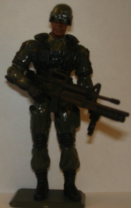 I borrowed the figure design of this one from iwbeta's custom of Bullet-Proof. I loved his version, but wanted to do a different paint scheme. I didn't want to go old school with his colors because I didn't care for the bright green and yellow stripes. It's doubtful he would survive for too long in that get up! I went basic, olive drab green and flat black. I also went for the Barrel Roll web gear, which doesn't fit too well but I like the look of it.