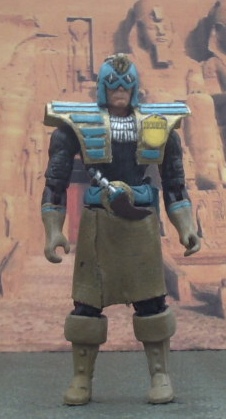 (My version of the DreddVerse): Judge Horus of the Luxor City Force. Luxor City is Egypt's main remaining population centre. After the failed coup by Judge Kamen which saw the death of Chief Judge Giza and an attempt to feed Dredd to an ancient monster, Judge Rameses took control of Luxor. It was quickly apparent that he was arrogant to the extreme and becoming insane as Cal had been in Mega City One. Horus had been trained at the Mega City One Academy of Law after his parents had emigrated to the city with their children. Upon hearing of Rameses' excesses, he asked Chief Judge Hershey to be sent to Luxor City on an 'exchange program'. She agreed, providing he did something about Rameses. Seeing the corruption on the force and the fear of his people, he marshalled rebel Judges and after a brief but bloody struggle, installed the moderate Judge Khufu. Luxor City is now run along similar lines to the Justice System in Mega City One, and enjoys a closer relationship with that city.
