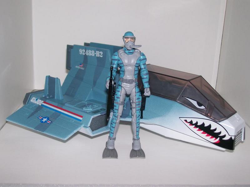 This is another addition to my growing line of Tiger Force themed vehicles I've been wanting to do for sometime. Thanks to the Target vehicles I finally got this one knocked out. The Tiger Shark theme is a new take on the traditional Tiger Force colors. I have always been bothered by the fact that all of the Tiger Force water vehicles were always colored in a bright yellow cover. The yellow color would be easy to spot on the open water and offered no camouflage for the vehicle whatsoever. My solution to this problem was to take away the yellow and tan and change those colors to a blue and gray color which closely resembles coloring on a real Tiger Shark.