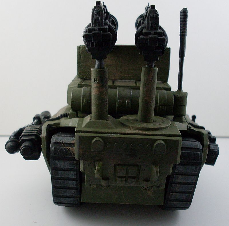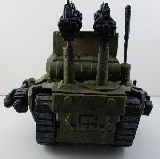 The Slammer AR-3 was one such Warbot. Designed primarily for destroying fortified bunkers, it sported a three-tube missile rack firing HEAP rounds capable of penetrating up to three feet of reinforced concrete; a flamer thrower mounted to one side and a 7.62mm internal-feed machine gun mounted to the other tended to make quick work of any survivors. The tracked, armored vehicle body gave it a high degree of mobility and it's low-slung profile made it a difficult target to hit.