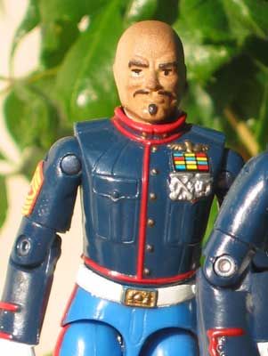 "Tony Saturday," as he is known in the Corps, was my attempt at creating a fully-fleshed out character from a headless Marine figure. I will someday make a field-dress version of this character as well, at which time I plan on having the complete character backstory. While trying to find a suitable head, I came across this Roadblock head, and I couldn't remember anyone else switching race with the mold, and decided that it would work perfectly. Tony is part of the USS Flagg decoration and interior security detail.