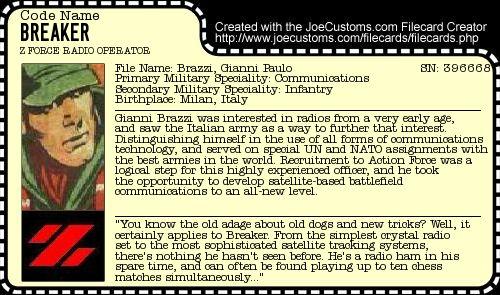 No relation to the GI Joe character of the same name, although he does serve the same function. As soon as I saw the Hard Drive figure, I envisioned him as an updated version of Breaker. The only change was to the arms, which I wanted for my custom of Space Force leader Skyraider; I replaced them with more realistically military Beach Head arms. I then painted the Dial Tone backpack (my all-time favourite backpack by the way, if anybody's running a poll) and added it on. It's missing the mouthpiece, but since there's one moulded to the hat, it doesn't seem to matter.