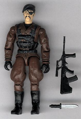 I really liked the idea of Maj. Bludd in a beret. A plain black beret with no insigina flash gives him the look of a man who holds no loyalties to any nation, group, cause, or anyone except himself. After this change, the rest of him fell into place rather easily. Outfitting him with an exotic weapon like the AUG 77 and a combat knife rounds this new look out perfectly.