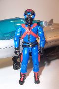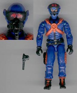 I've always wanted to make an Air Viper based on the art from the comic (Marvel run). I never could seem to get the parts together for it, but I finally pieced this figure together after getting my hands on a Mail-In Major Altitude figure. I slapped an Alley Viper head on and figured it worked very well color wise. I then dremeled down an Action Pilot helmet for the visor, added a peg to the oxygen mask and drilled a whole in the face for the mask. An easy custom, but I'm very pleased with the result.