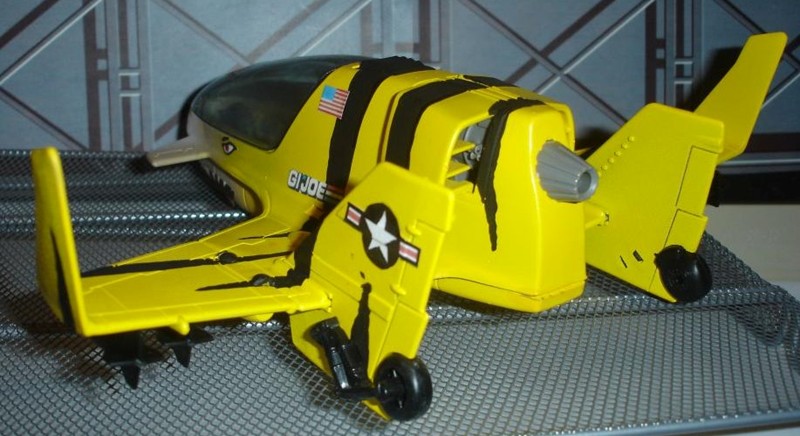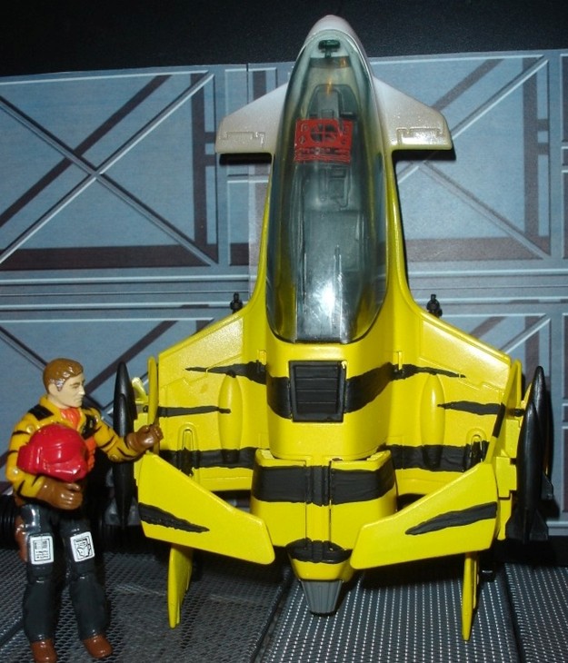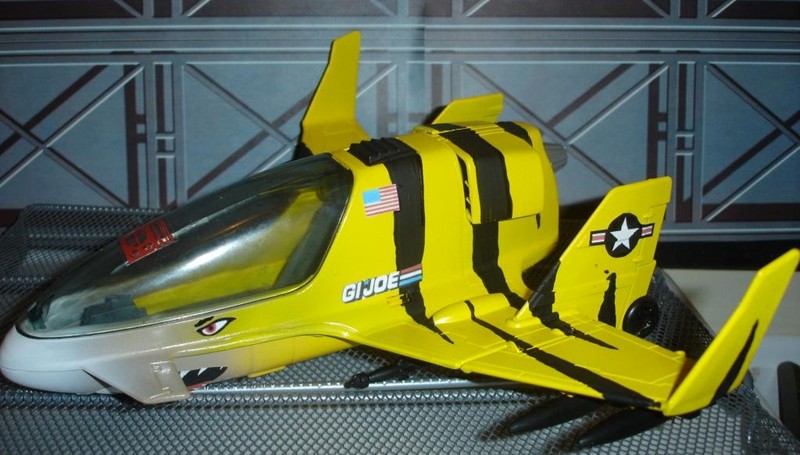 The Cobra Firebat has been in the Cobra inventory for quite a while, and has been involved in engagements with Joe forces several times. The Joes have been on numerous missions to capture avionics black boxes, or to gain intel on terror dromes so It is unsurprising that the Joe team has captured one of these superlative aerial interceptors. When the Tiger Force became more of a QRF (Quick Reaction Force) stationed at the Pit III, Skystriker had the grease monkeys paint up a captured Firebat in TF colors and install a launch silo mechanism in one of the surface quonset huts. It's high speed, agility, compact size and downright lethality makes it a good choice for it's role.