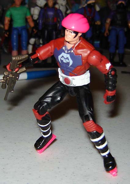The Venom vs. Valor Zartan was useless to me. He looked absolutely ridiculous, and there was no reason whatsoever given for the ridiculous outfit he wore. To me it looked sort of like a jogging outfit. One day while sorting my accessories, I happened upon these neat pink roller blades and helmet, and I thought they may make a fun addition to a useless figure.