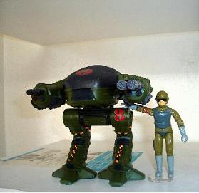 I always wondered why the Cobra B.A.T. had to be humanoid looking. So when I saw the Ed-209 Robo Cop toy and thought it would make the perfect Cobra Bat. I have 4 of these all customized right now. I chose to keep the right arms on all of them and envision them as a small caliber machine gun, grenade launcher, and a flamethrower.