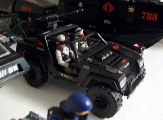 I picked up another V.A.M.P. on eBay for 8 bucks and probably spent another 8 on Paint and decals. I'm pretty happy with how those numbers add up. I like the "Laser" cannon better than the missles. I like the open cab way better because you can actually see the figures sitting in it. I could care less whether there's a shovel or an AK-47 stuck on the hood. The only thing I miss is having the platform on the back to hold two more figures. Even though it doesn't seem practical on the Stinger for them to stand with their faces inches away from the missles.