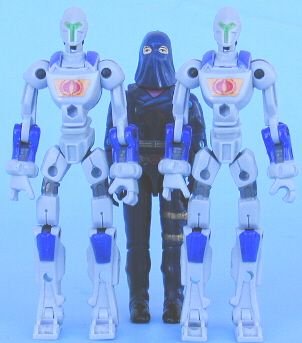 From General Hawk's Files: "Honestly, we're not too worried about encountering these two on the battlefield. That's not what they were built for. It might make capturing him a bit more difficult, but they're probably nothing that having a tank run over them can't deal with. If Cobra Commander is so insecure in his own headquarters and wherever else he spends time that he felt the need to have these two monstrosities built, that's his business. Most people settle for a teddy bear."