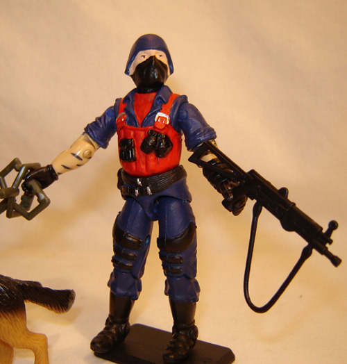 This is actually one of the first customs I started several years ago. My inability to satisfactorily paint eyes kept me from ever finishing it, until now. I ended up having a friend paint the eyes for me. I first set out to make this when I realized the Terror Drome should have come with figures other than a pilot. It seemed to me that a small security detail would have been cool, and this is part of what I came up with.