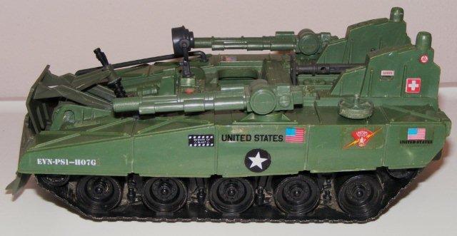 In any venture, especially during combat, there are situations when obstacles, natural or otherwise, impede forward progress. The terrain is not always suitable, equipment sometimes breaks down, and IEDs sometimes make the going rough, to say the very least. It is necessary, then, in such situations, to have a well-equipped support crew to aid in overcoming such impedances. This is where the Bulldog comes in. Utilizing the same frame as the venerable Bridgelayer, and the same HTS-T2 Forced-Induction 1700HP Turbine Engine, it is indeed a workhorse . . . and one that has saved many a day for the Joe Team.
