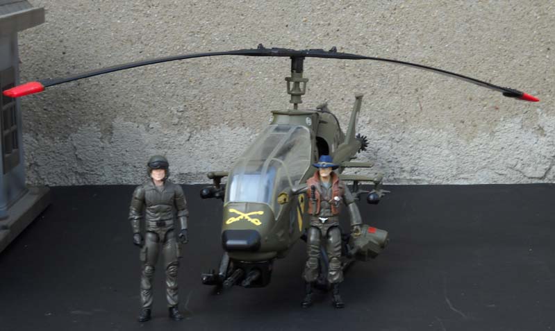 It is well known that Wild Bill served in the Air Cavalry during the war. When he joined the Joe team, his skills as a helicopter pilot proved invaluable. Wild Bill became the main helicopter pilot for the experimental GI Joe Dragonfly. After many successful missions, by Wild Bill during his tour with the Joe Team, the Joes surprised Wild Bill by presenting him with a personal Dragonfly with the Air Cavalry markings. Now Wild Bill leads the charge of the Dragonfly squadron much like the original Cavalry Soldiers in his own Air Cavalry Dragonfly.